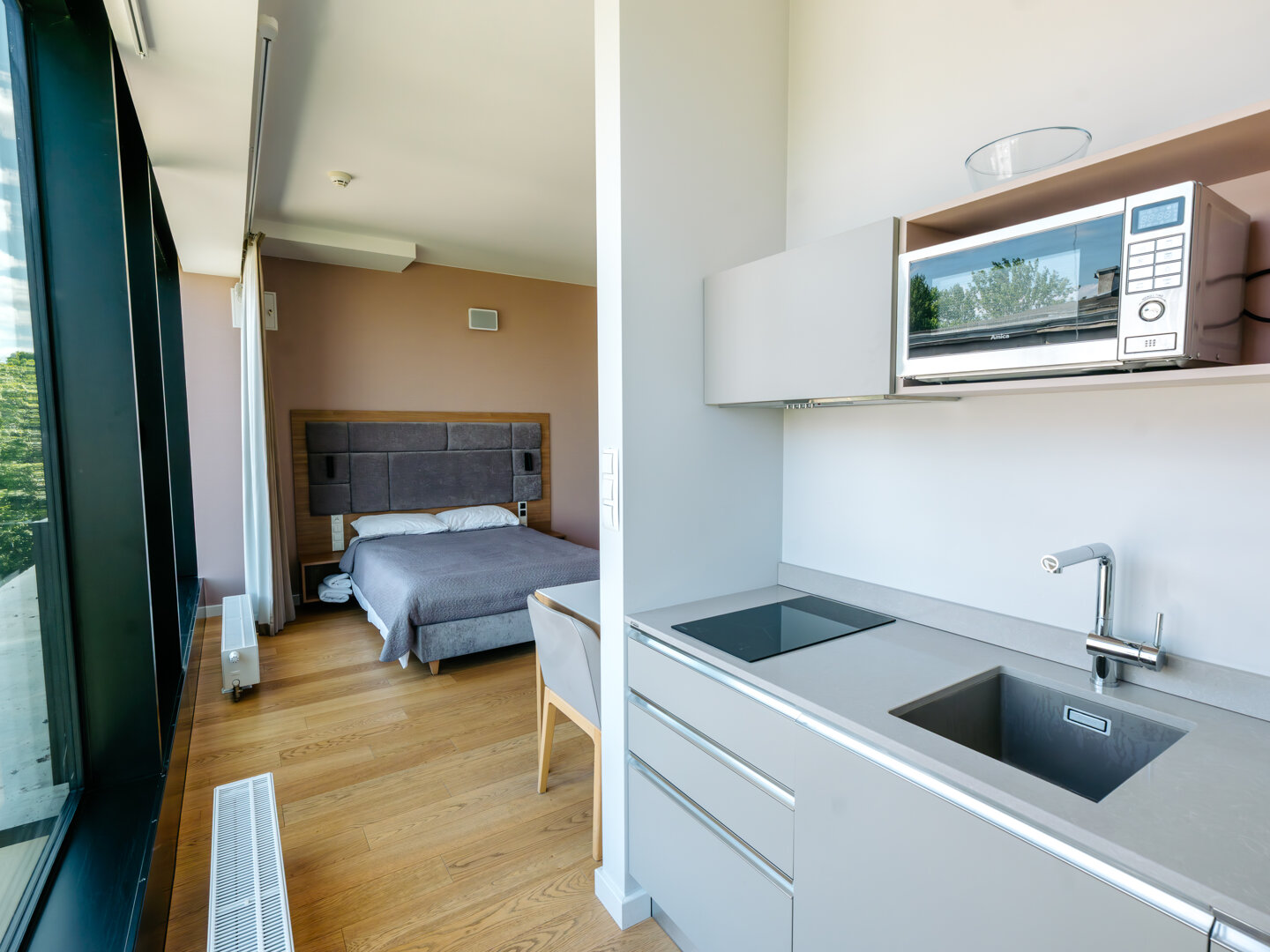 Aparthotel Park znajduję się w centrum Gdyni. Oferujemy apartamenty typu studio, z 1 sypialnią oraz z 2 sypialniami. Każdy apartament wyposażony jest w kuchnie, łazienkę oraz dwuosobowe łóżko, telewizor, pralkę oraz bezpłatne WiFi. Dodatkowo w cenie wy